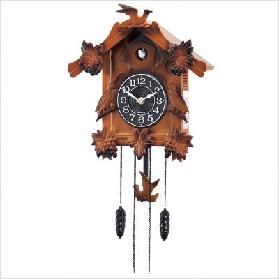 Add a little Old World style to your decor with this whimsical cuckoo clock. It plays music and lets out a tone on the hour. The detailed cuckoo clock design and classic analog clock face make this quality timepiece a conversation piece as well. Durable plastic construction with wooden frontpiece; requires 2 AA batteries (not included). Category Type: Cuckoo, Pattern Design: Old World, Measures: 12 L x 6 W x 12 H, Color: Brown, Light Type: None, Power Supply: Battery, Batteries Required: AA, Battery Included: No, Material Type: Plastic and wood